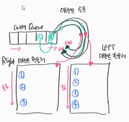 이벤트루프 처리 -> 이벤트 핸들러가 존재한다
