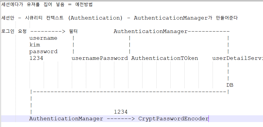 - password๋ ์คํ๋ง์ด ๋ฐ๋ก ๊ฐ์ ธ๊ฐ์ ์ธ์ฝ๋ฉ์ ๊ฑฐ์ณ์ผํจ.