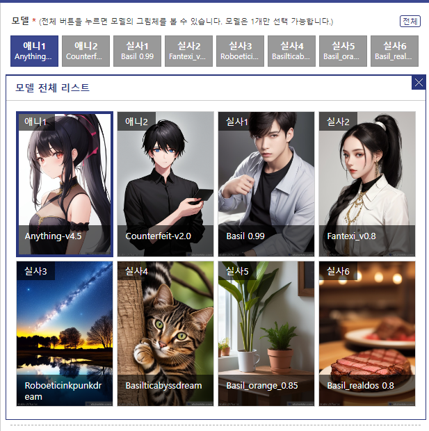 위와 같이 여러 모델(체크포인트)를 불러 올수 있어요 원하시는 것을 선택하시고